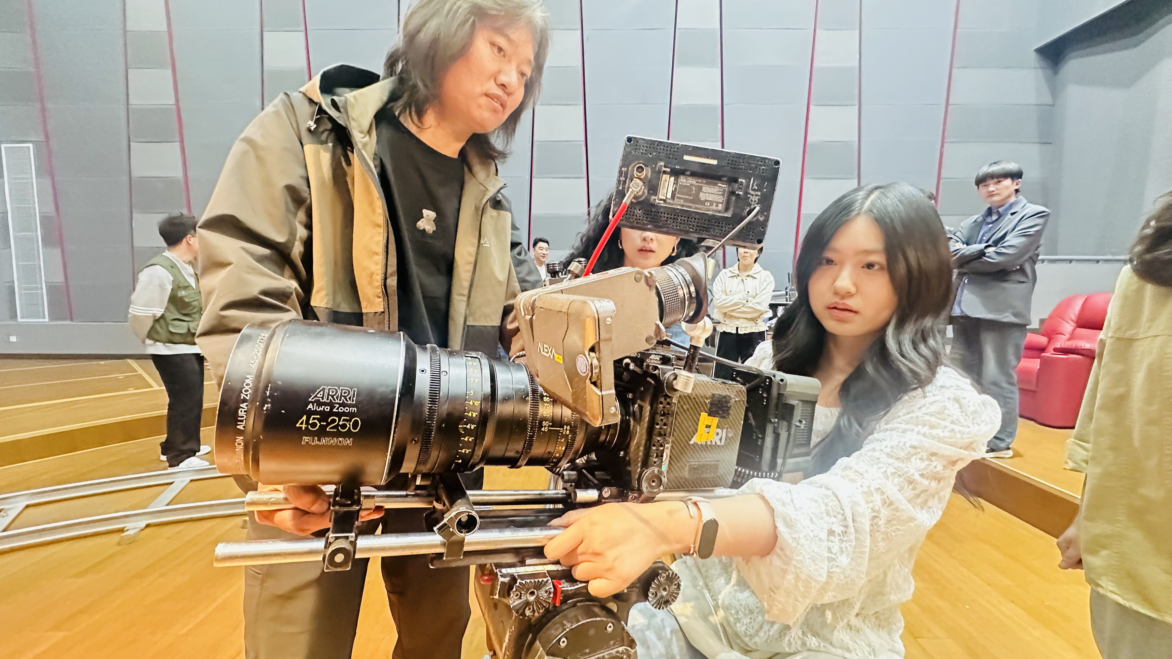 在电子炮特训环节中,学员需要完成12米电子炮的遥控头系统调试,并运用升降机位的转换完成动态影像前后景关系的人物拍摄,在三千平的摄影棚中营造了了森林秘境的光影层次,学员使用移动轨道在特定场景外景中结合国安第一城明清古建筑群落,现场联合创作了武侠短片,期间展现出紧密的团队合作的专业精神,生动地诠释了"摄影技术为叙事服务"理念。