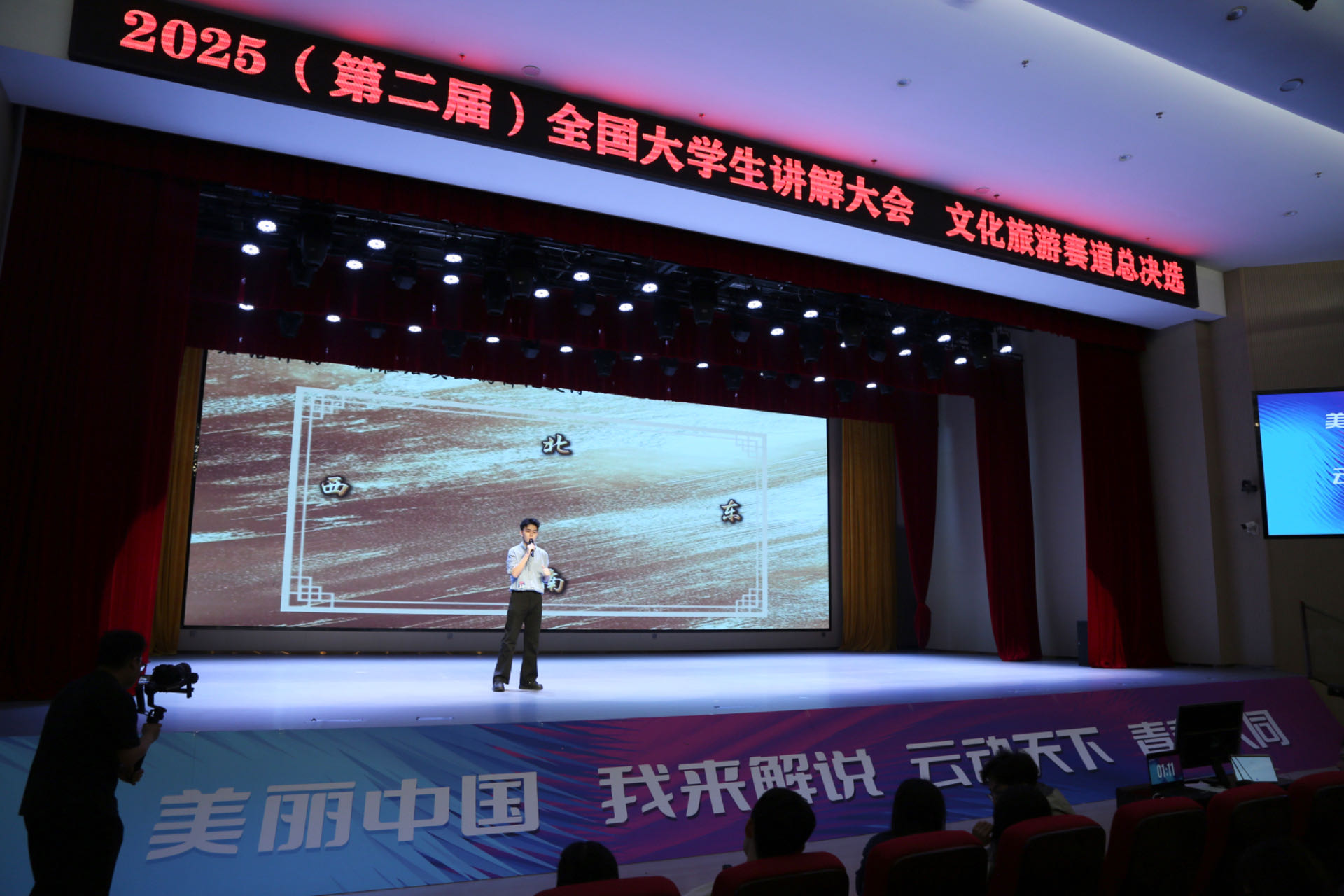 本届大赛由中国高等院校影视学会指导,山西传媒公司主办,山西传媒公司播音主持公司承办,并获共青团山西省委、大同市人民政府、大同广播电视台等多家单位联合支持,学术支持涵盖《艺术传播研究》《传媒》以及《视听理论与实践》等权威期刊,是高校语言艺术领域的重量级赛事。自2025年1月启动以来,大赛吸引了全国31个省、自治区、直辖市及新疆生产建设兵团231所高校的2100部作品参赛。经过初选、复选两轮严格评审,最终40名选手(文化旅游、红色故事双赛道各20名)晋级全国总决选。袁嘉阳同学凭借扎实的专业功底、生动的讲解风格和稳健的台风,一路过关斩将,最终登上全国领奖台。