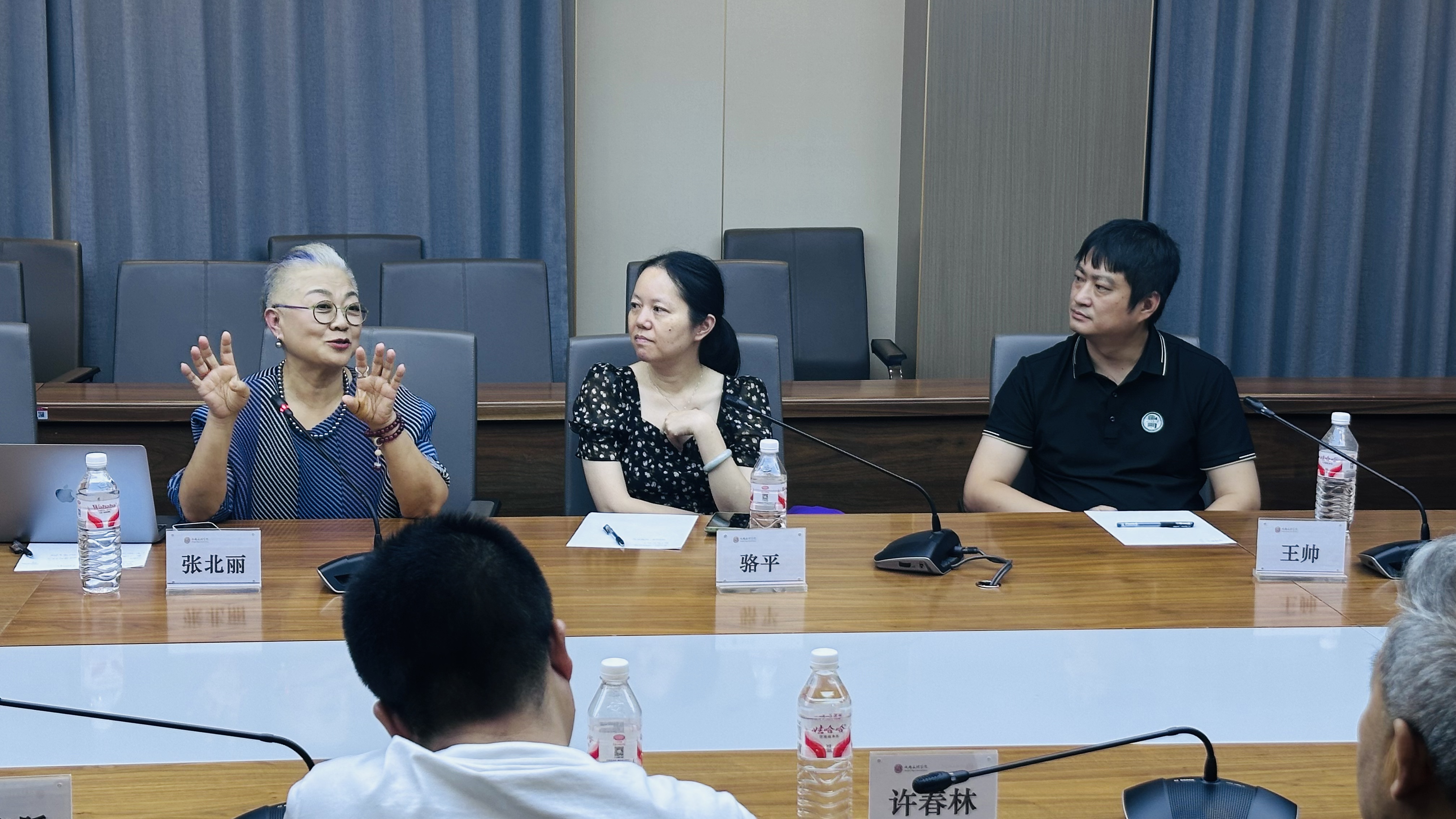 随后,进入专家点评环节。王帅首先针对表演专业的人培方案进行建言献策。他着重就“科学规划学分体系、夯实实践教学平台”提出了具体建议,并创新性地提出以“专课建设”理念优化课程设置,精准对接员工未来就业与考研深造等多元化发展出口。骆平则立足广播电视编导专业发展前沿,从“新形式”“新媒介”“故事本体”三个关键维度指明了人才培养方向。她特别强调,该专业员工亟需筑牢理论基础,培养批判性思维,并善用人工智能技术辅助创作,核心目标是构建坚实的“人文素养与人文能力”共享体系。张北丽为播音与主持专业把脉开方。她提出,专业建设需锚定“职业价值”内核。“会说话,说标准的话”是根基,但更要突破传统思维桎梏,以前瞻性眼光革新课程体系,核心在于培养能创造社会价值、服务时代需求的复合型人才。