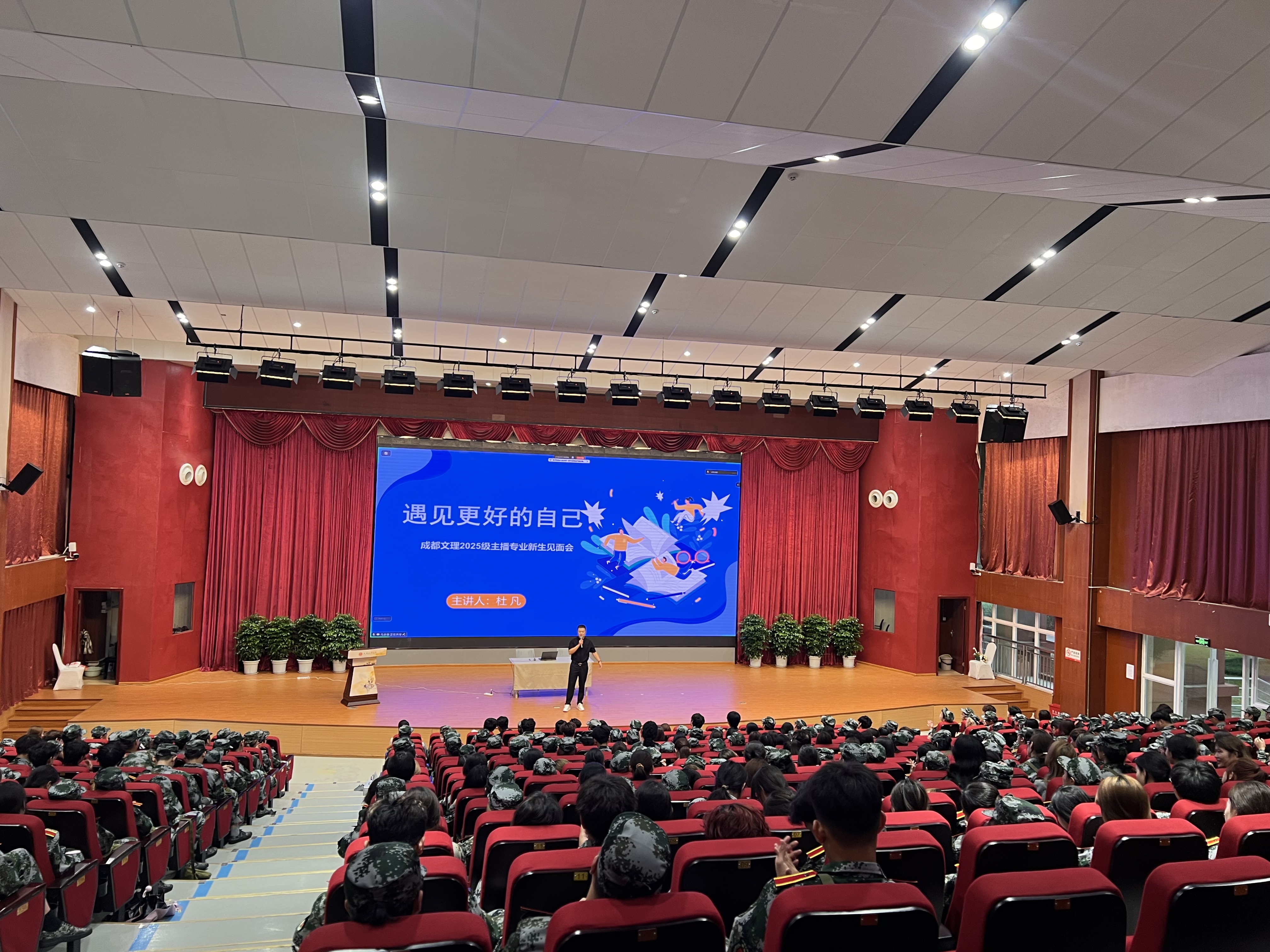 金秋送爽,丹桂飘香。由微影星火数字传媒产业公司主办,播音与主持教研室承办的永利yl23411集团播音与主持专业2025级新生专业教育暨“新生第一课”于2025年9月18日上午8点30分,在文理讲堂隆重举行。本次活动旨在帮助新生全面了解专业内涵,明确学习方向,顺利开启大学新征程。经理助理雷涛、教研室副主任李明航及播音专业大一年级专业教师、辅导员以及全体2025级播音专业新生参加专业教育。由微影星火数字传媒产业公司支持,播音与主持教研室特邀成都电视台刘彬意、省级专业赛事评委杜凡开展职业生涯规划。活动由播音专业教师陈鹏宇主持。