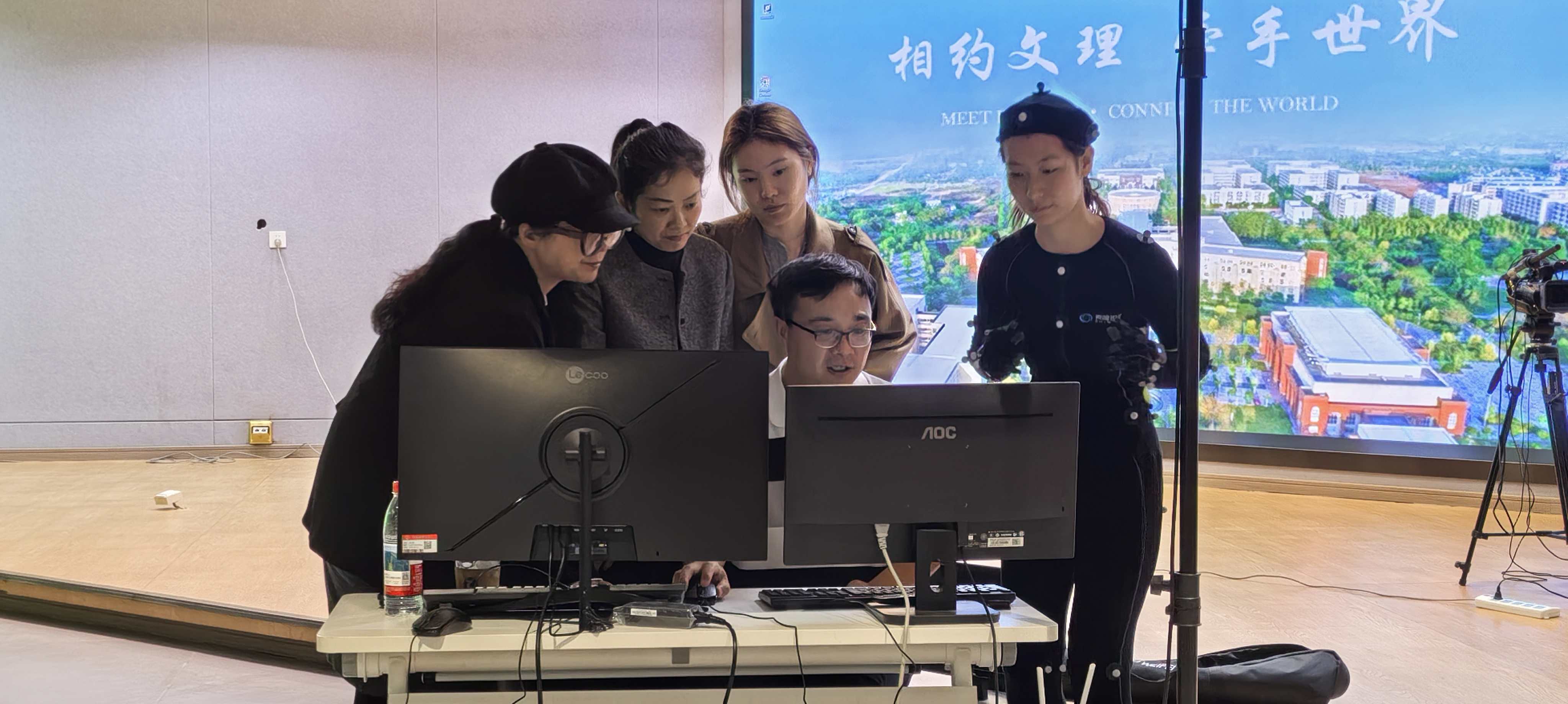 实训内容围绕动作捕捉技术的系统理论与实操环节展开,涵盖动作捕捉发展历程、光学动捕系统搭建、设备穿戴与数据采集、模型匹配与动画精修等模块。参训教师通过分组实操,完成了从数据捕捉到数字人实时驱动、直播推流及短视频渲染的全流程项目,显著提升了在MotionBuilder与Unreal Engine等平台上的技术应用能力。