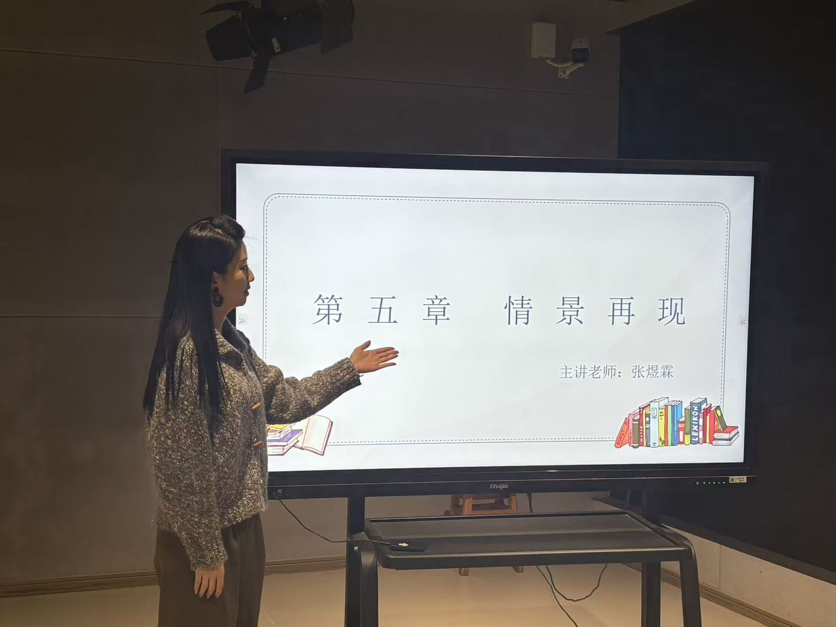 活动现场,张煜霖老师与吕永杰老师先后进行了课堂教学展示。两位教师围绕《播音主持创作基础I》的核心教学内容,分别以“情景再现”为主题,呈现了两堂精彩纷呈、各具特色的公开课。许雪老师通过精妙的案例对比和层层递进的思维引导,将抽象的“形象思维”化为可感可知的具体技巧,用白岩松的主持视频示范讲解,赢得了在场师生的阵阵掌声。徐晓雯老师的课堂则充满了艺术感染力,她通过创设情境、启发联想,引导员工深入文本内核,实现情感与声音的和谐统一,充分展现了有声语言艺术的魅力。