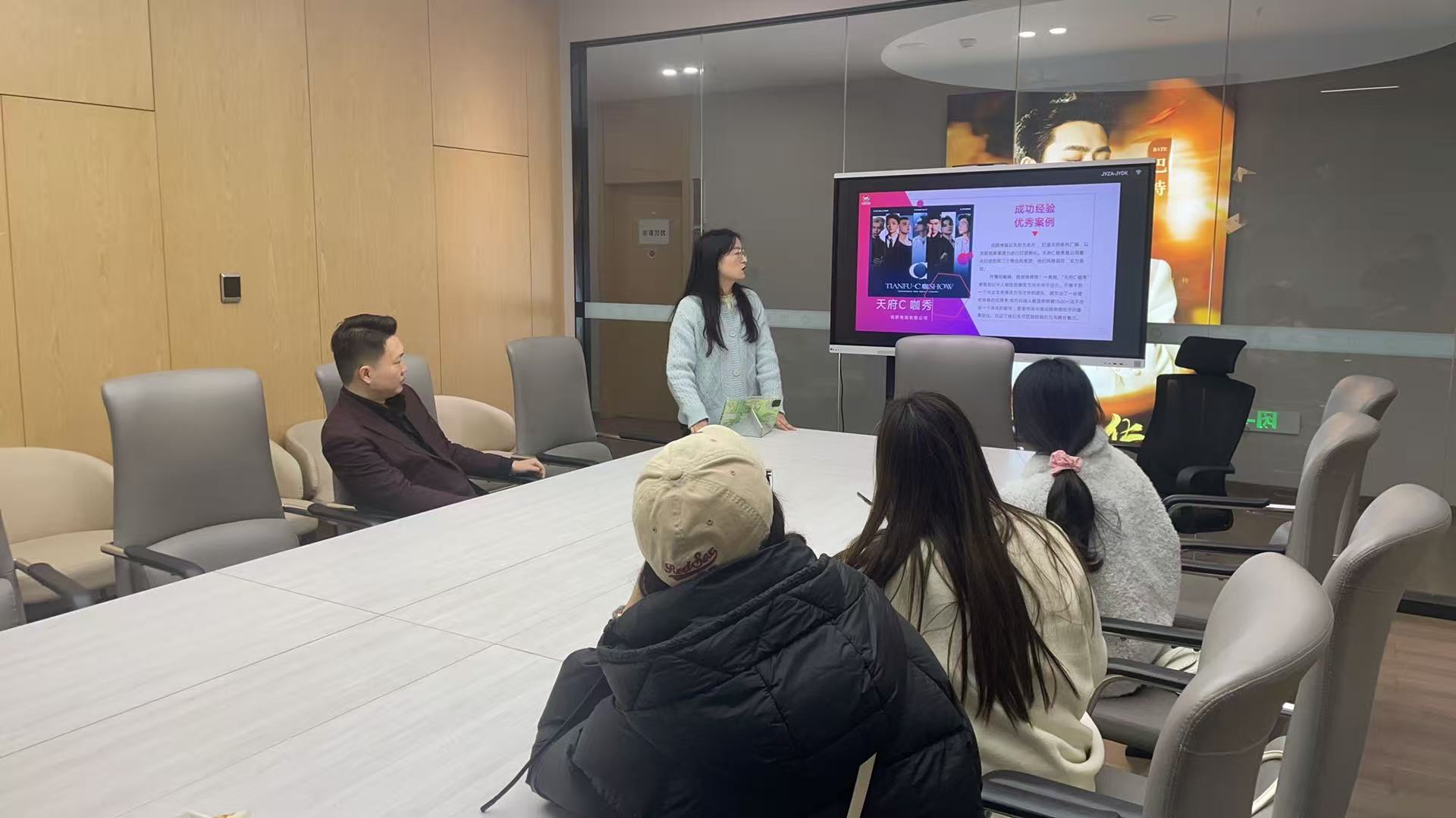 随后,人事总监千山和优联传媒代表人对公司情况进行详细宣讲,双方在会议室围绕当前泛娱乐行业的人才需求特点、职业技能要求以及校企协同育人机制等议题进行了务实交流。优联传媒方面高度认可公司在传媒与演艺领域的人才培养质量,并表达了对于兼具专业素养、创新意识与市场适应能力的复合型人才的迫切需求。公司教师代表则介绍了公司的团队建设、专业特色及员工实习实践情况,并表示希望通过此次访问,进一步打通校企信息壁垒,优化课程设置与实践教学环节,为员工搭建更顺畅的实习与就业桥梁。